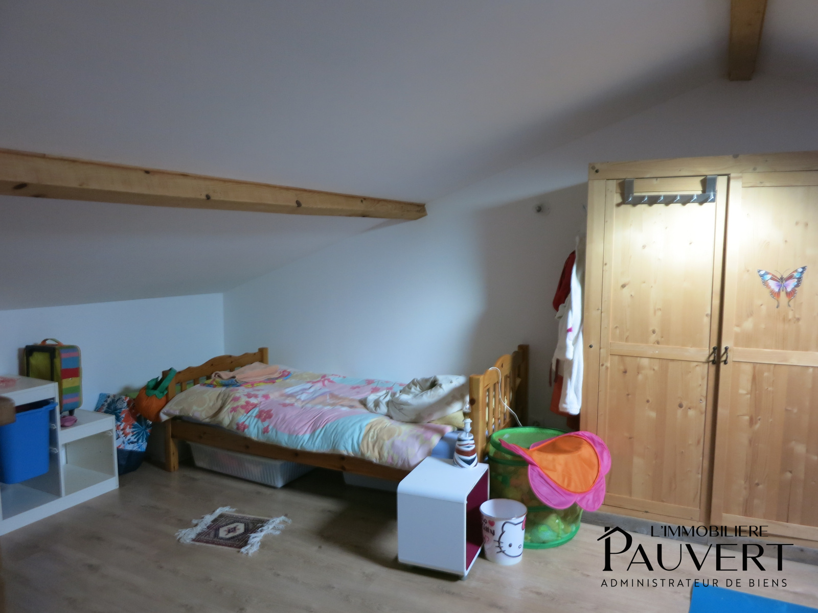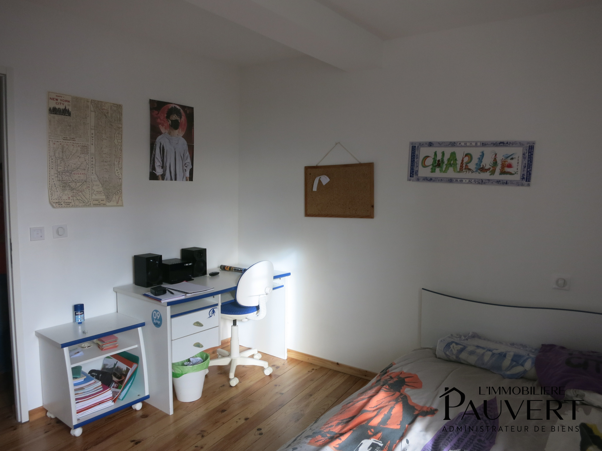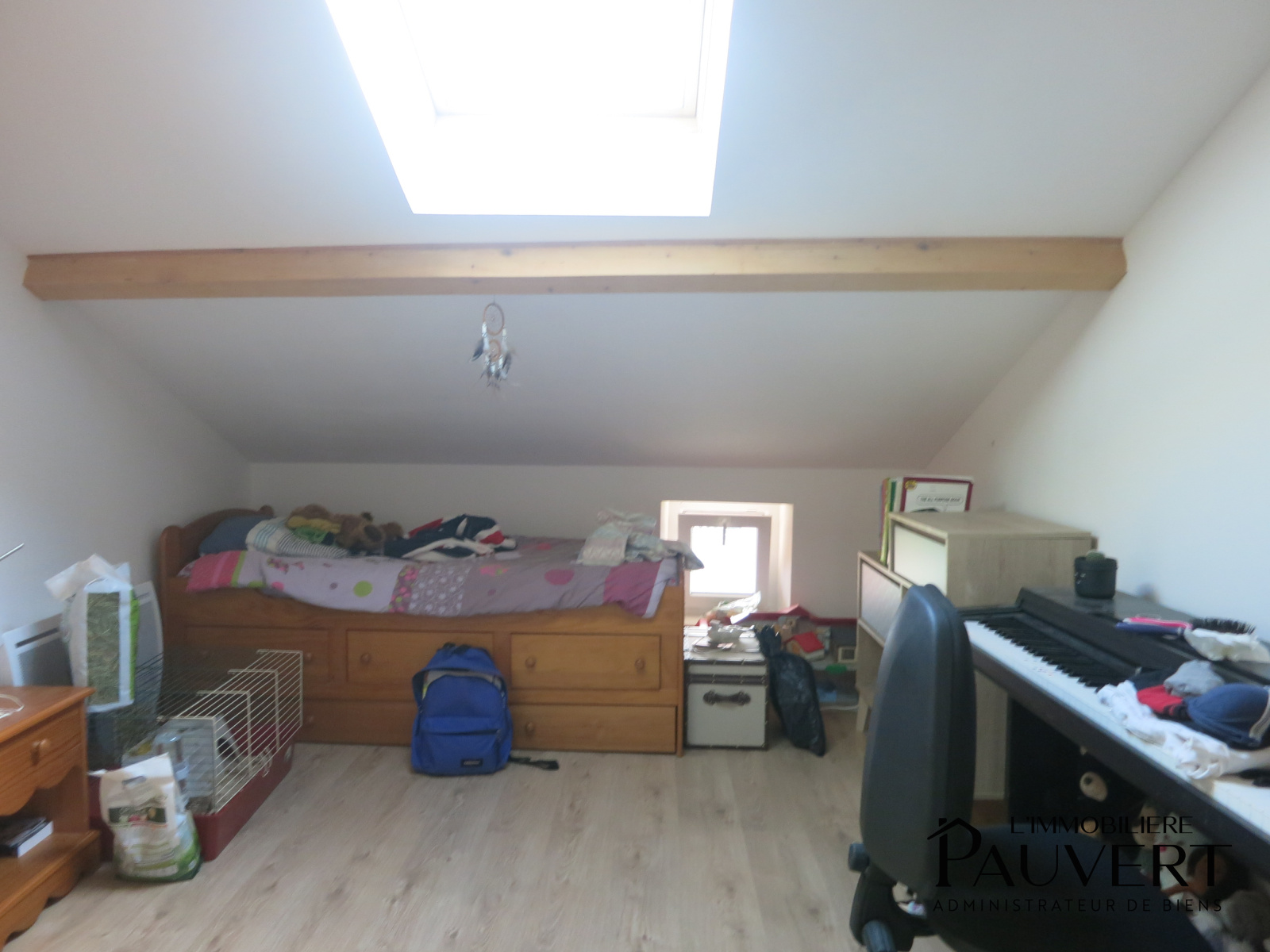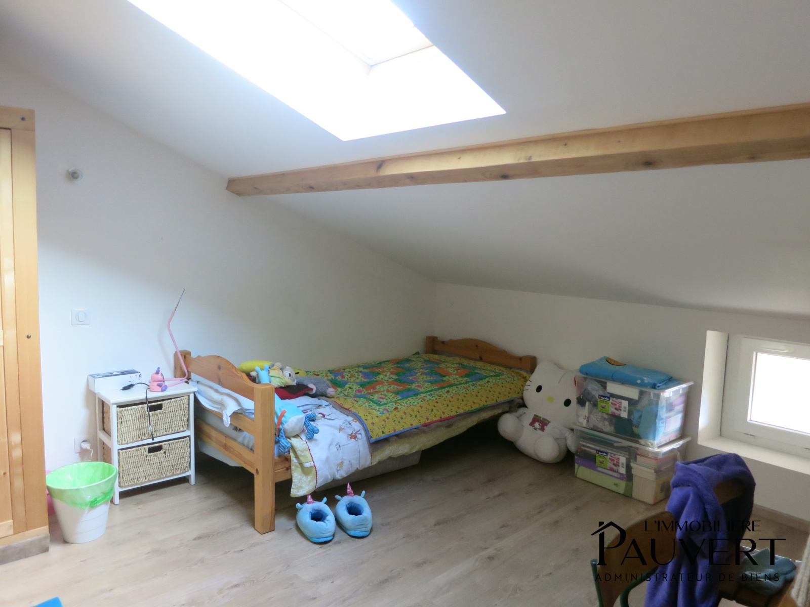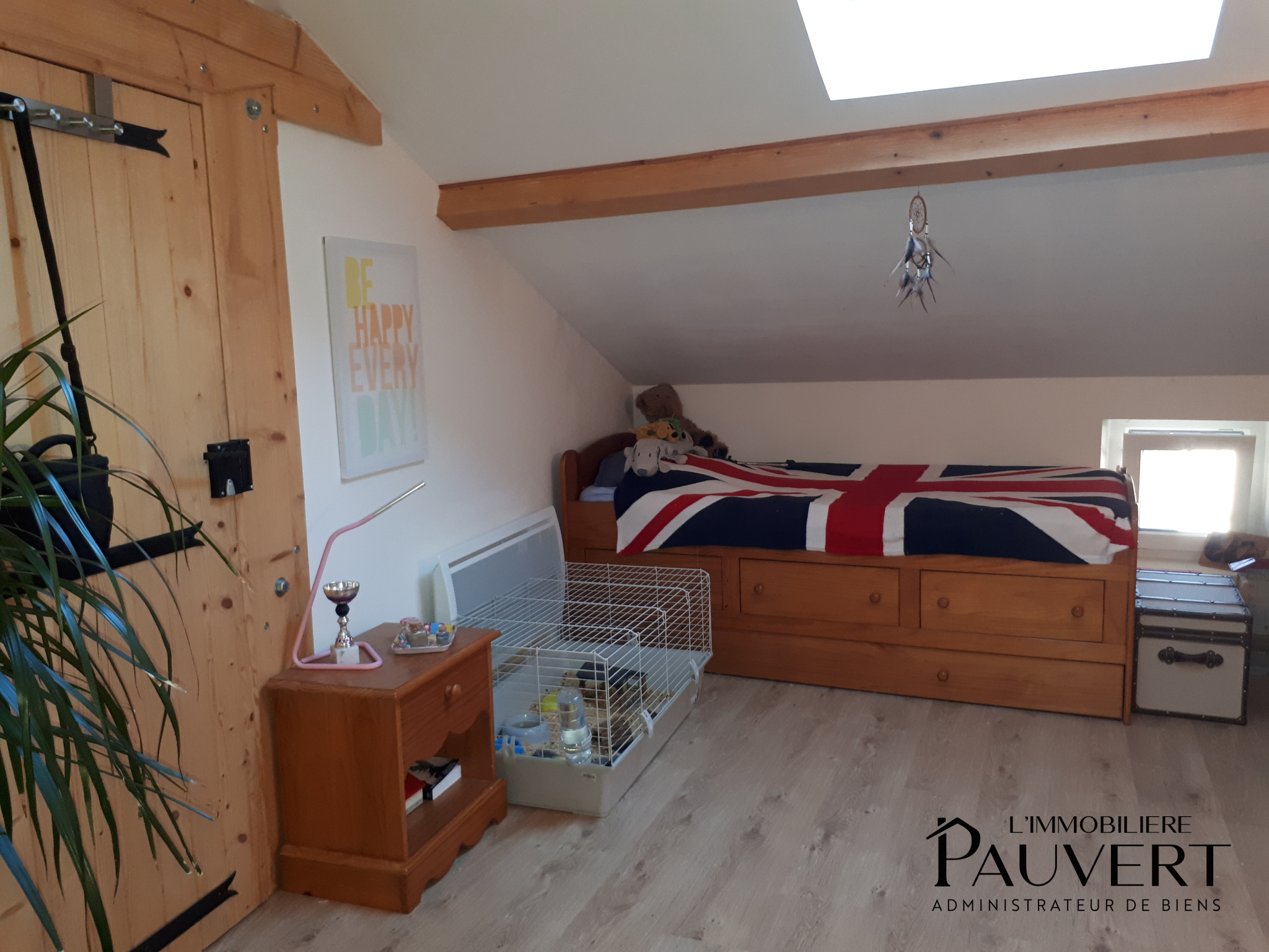 Au deuxième étage, une grande chambre ainsi qu’un espace pouvant faire office de chambre supplémentaire ou de bureau complètent le bien.